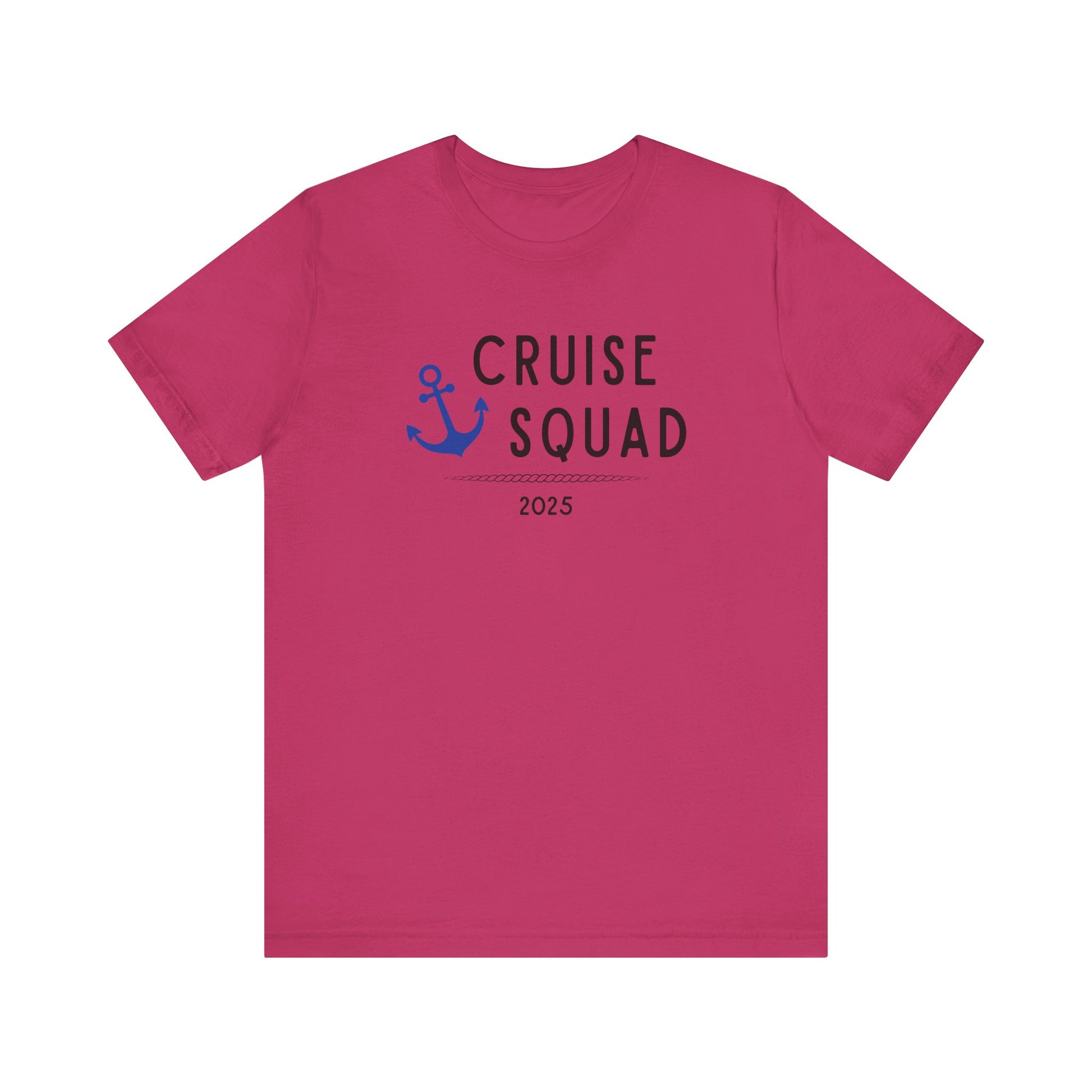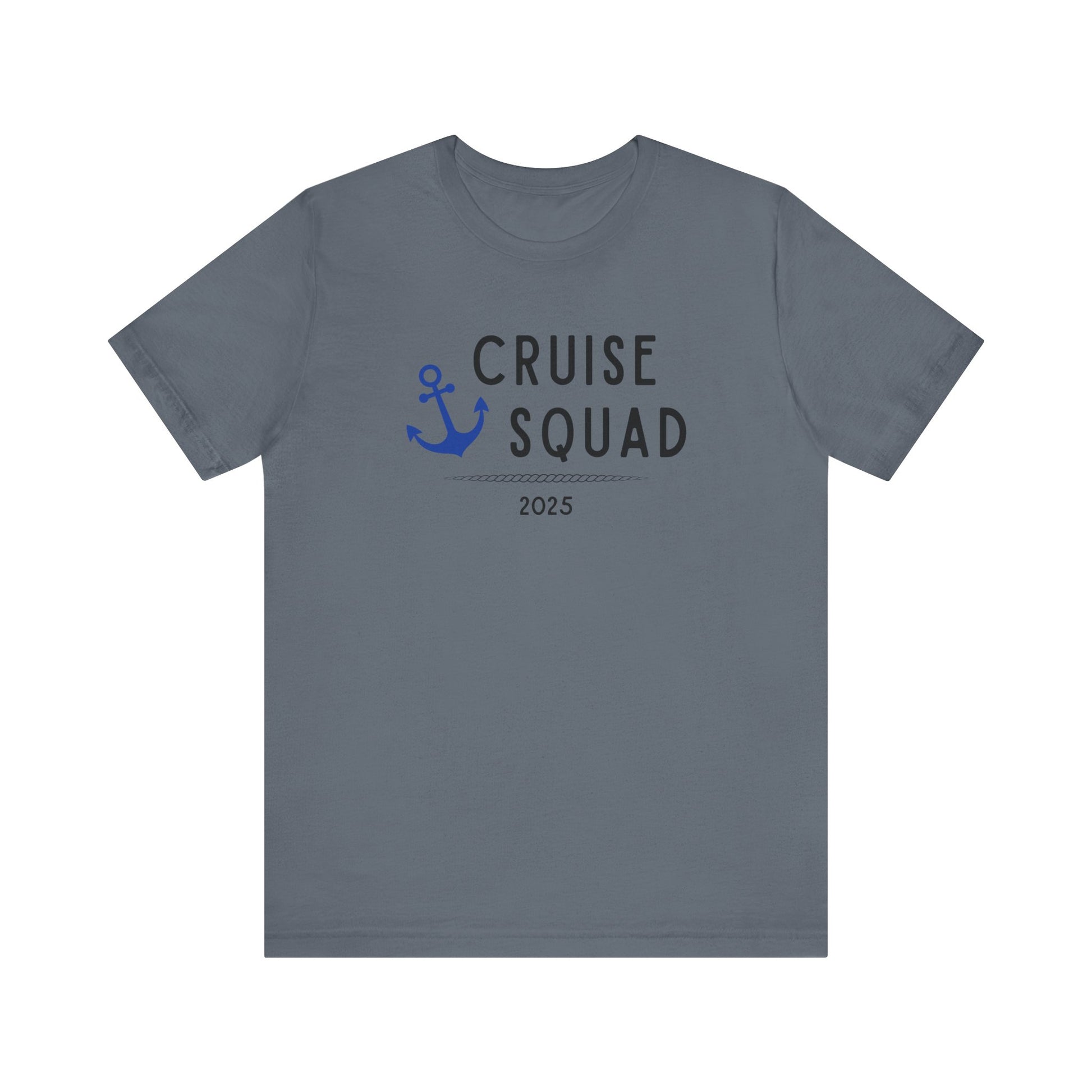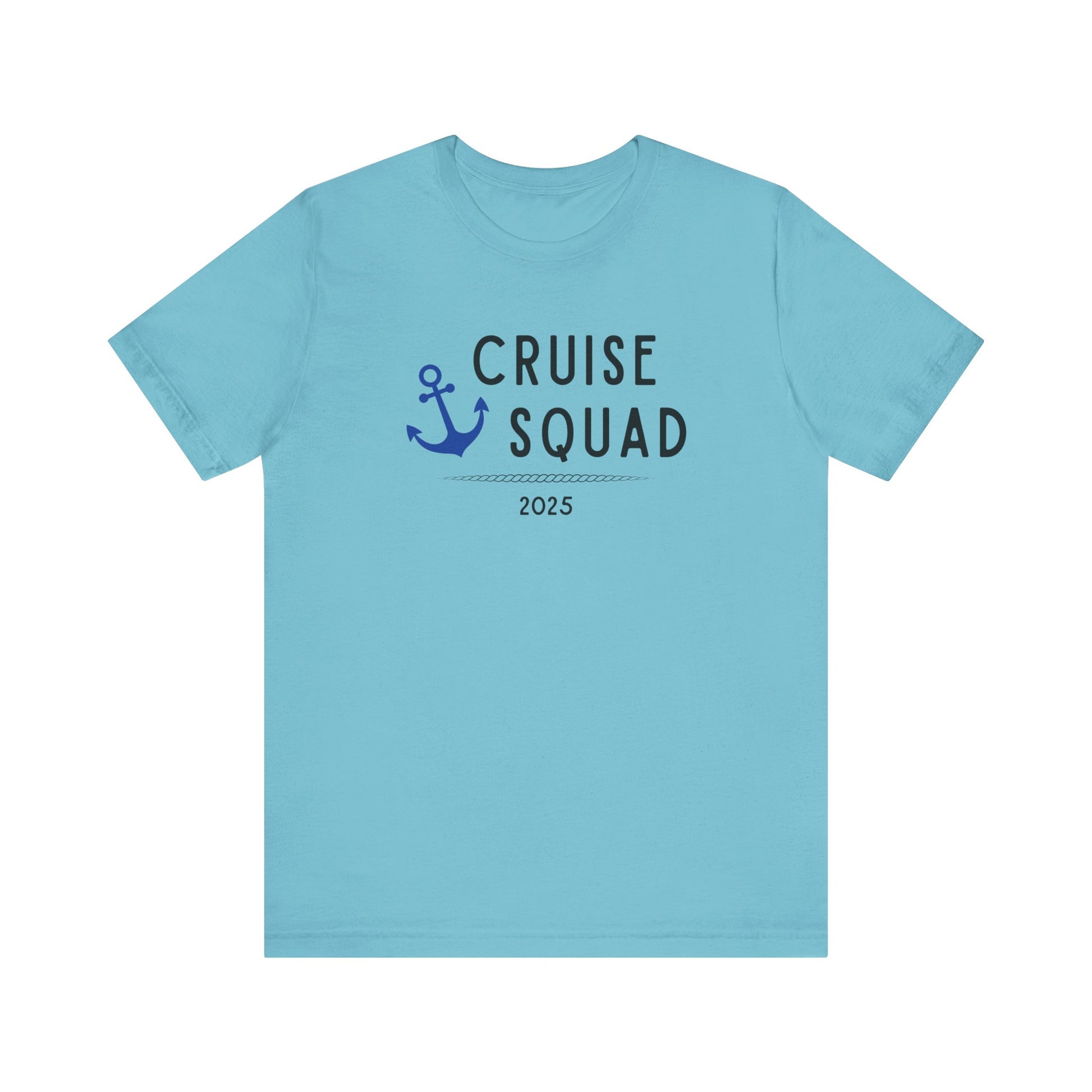 Set sail with your crew in the "Cruise Squad 2025" t-shirt, featuring a striking blue anchor. This shirt is the perfect gear for your group as you embark on a sea adventure, offering both style and a sense of unity. Whether it's for a family cruise, a trip with friends, or a special event at sea, this tee captures the essence of your shared voyage, making it a great keepsake for any nautical escapade.