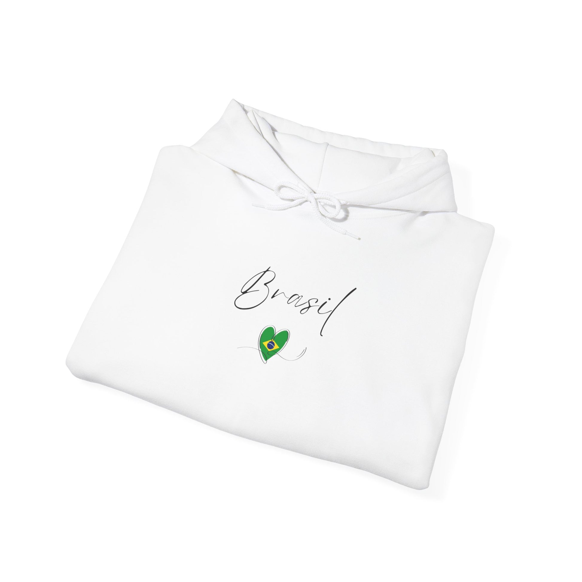 Embrace your love for Brazil with our cozy Heavy Blend™ Hooded Sweatshirt! This warm and comfortable sweatshirt displays a beautifully crafted heart adorned with the Brazilian flag's green, yellow, and blue hues, highlighted by the national emblem. Perfect for cooler weather, this hoodie is a stylish way to show your Brazilian pride at sporting events, community gatherings, or casual outings.