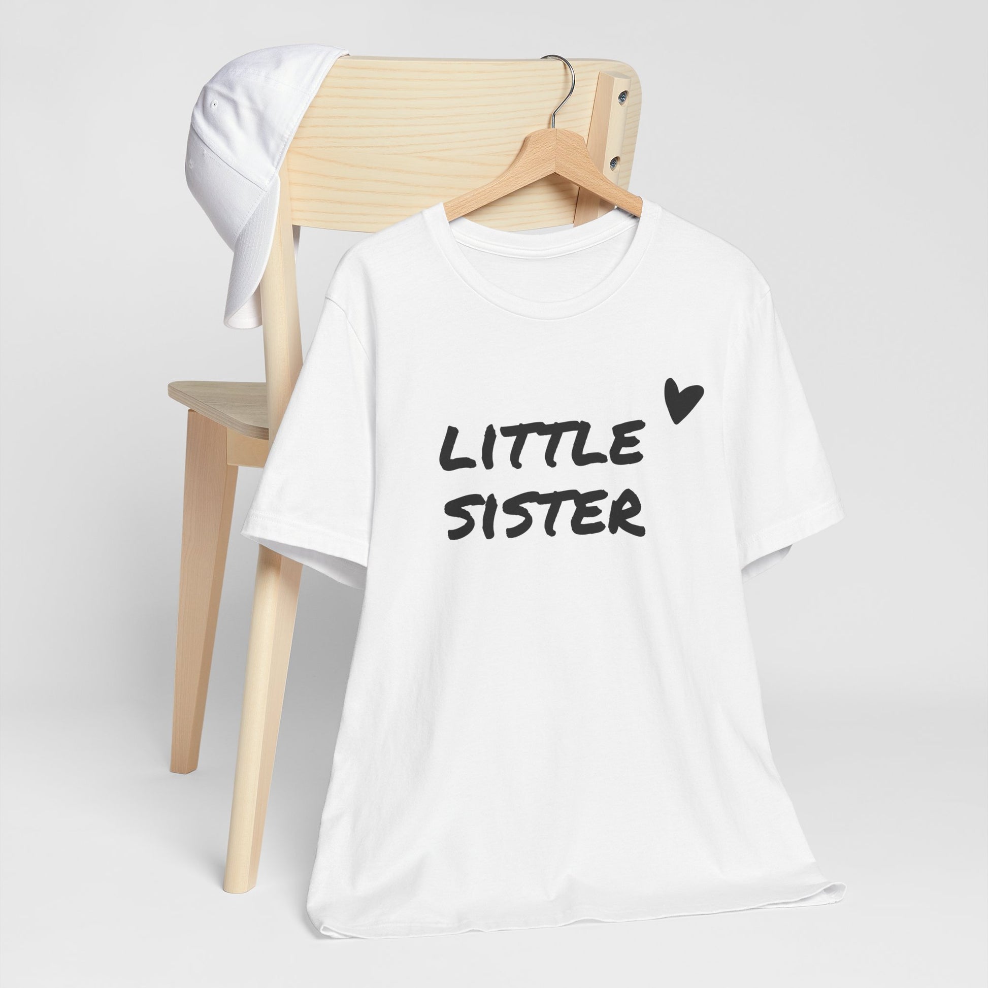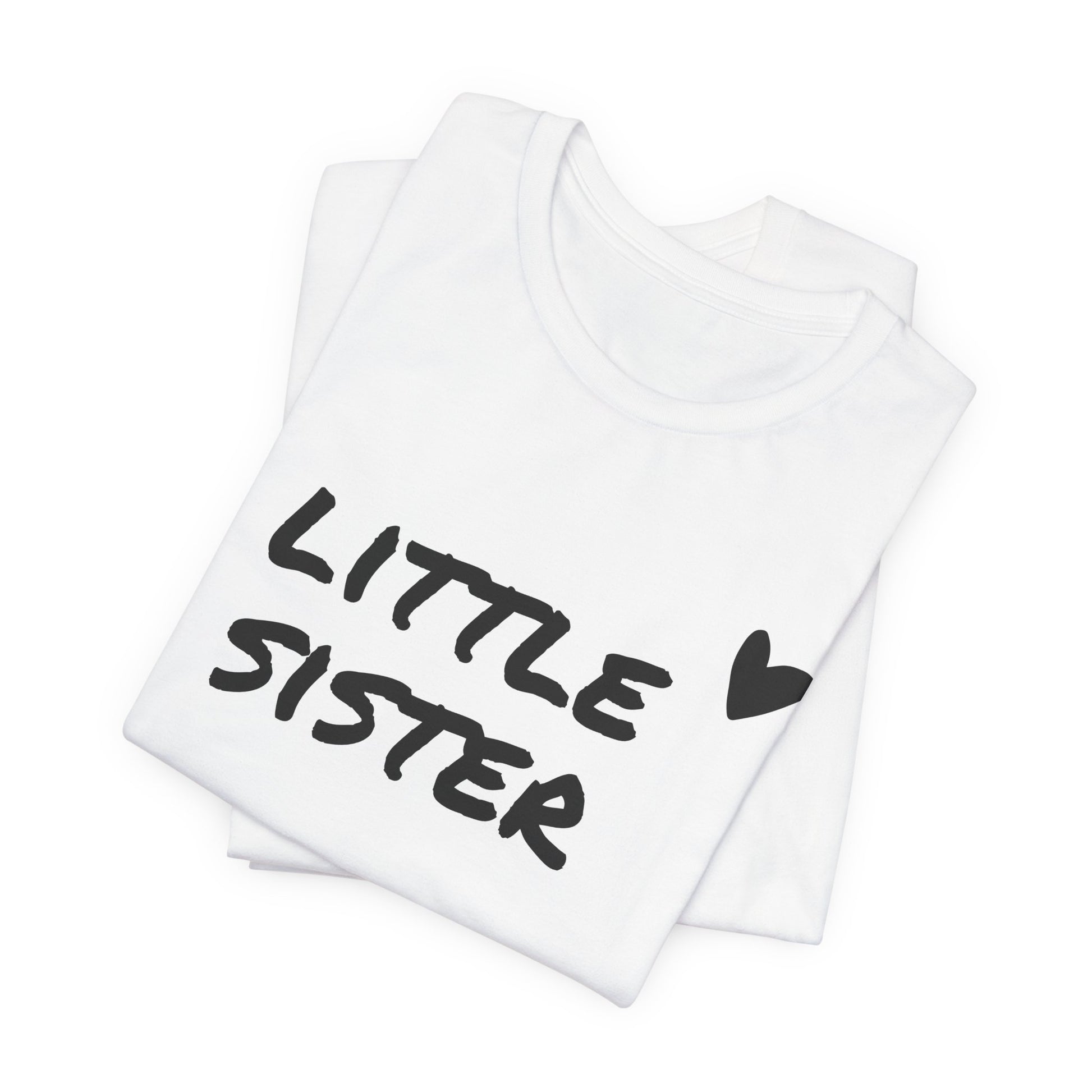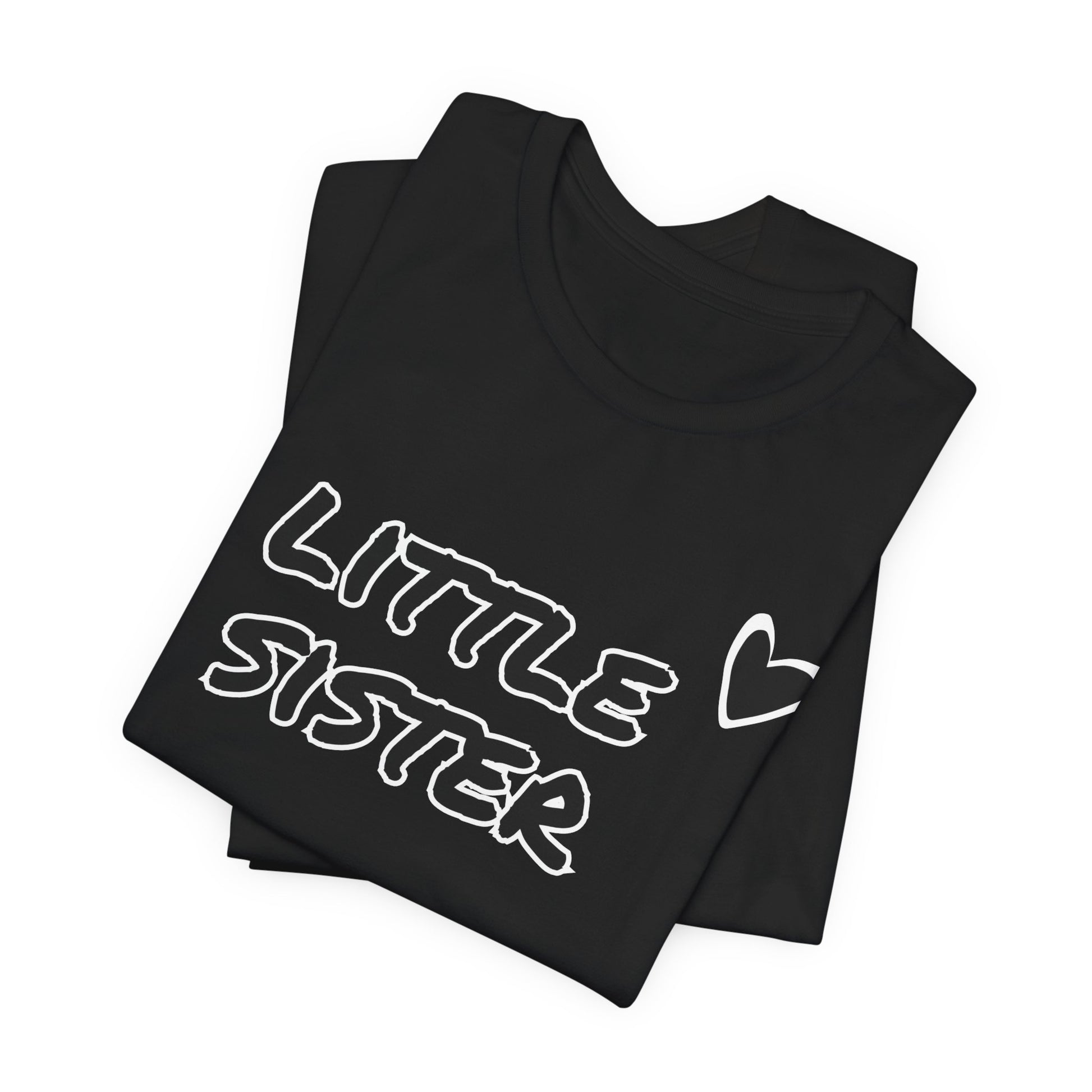 Celebrate the charm and joy of being the youngest with this playful "Little Sister" t-shirt. The whimsical, hand-drawn style lettering paired with a cute heart perfectly captures the endearing qualities of the youngest sibling in the family. Ideal for everyday wear, special sibling occasions, or as a heartfelt gift, this shirt is a sweet way for a little sister to flaunt her special status with pride and love.