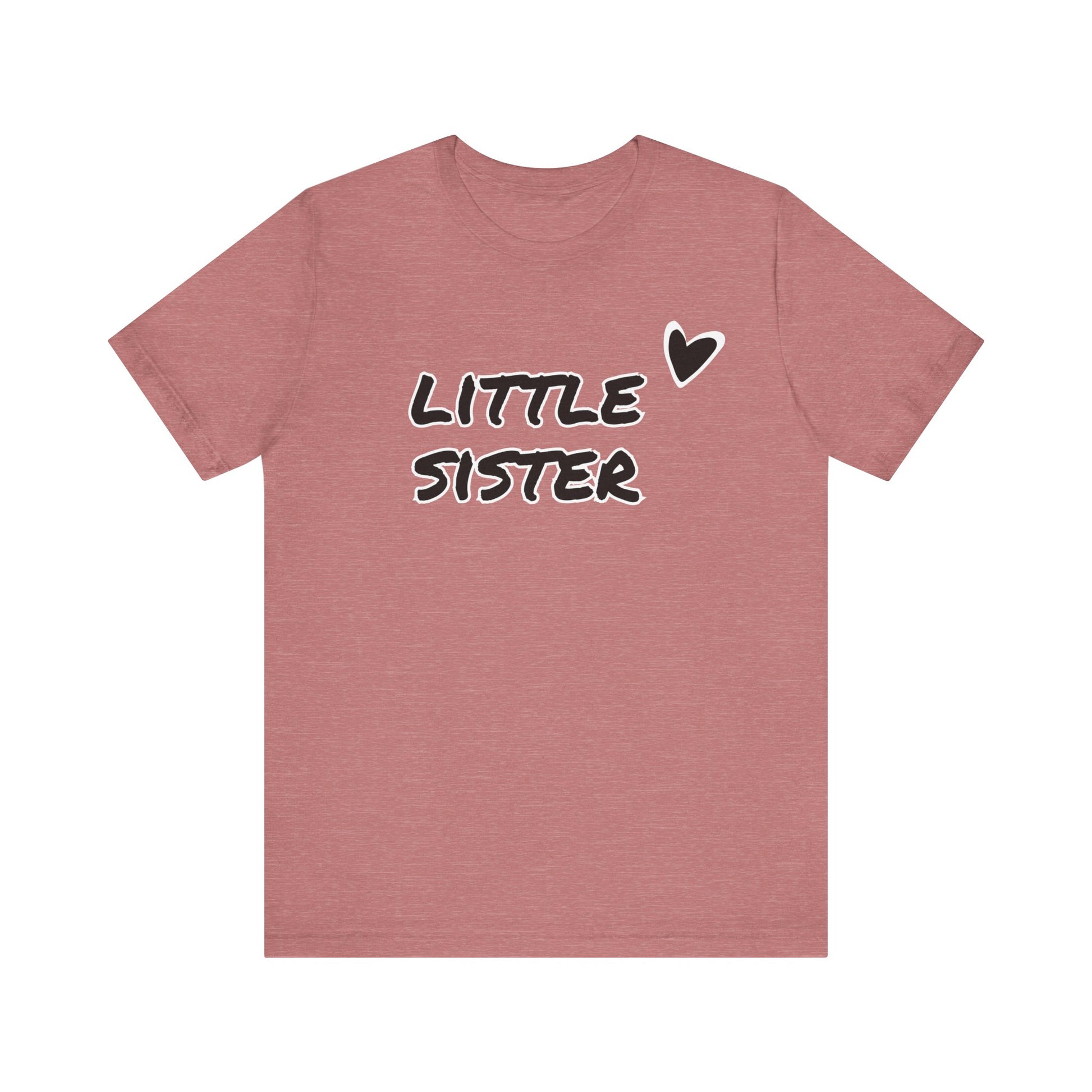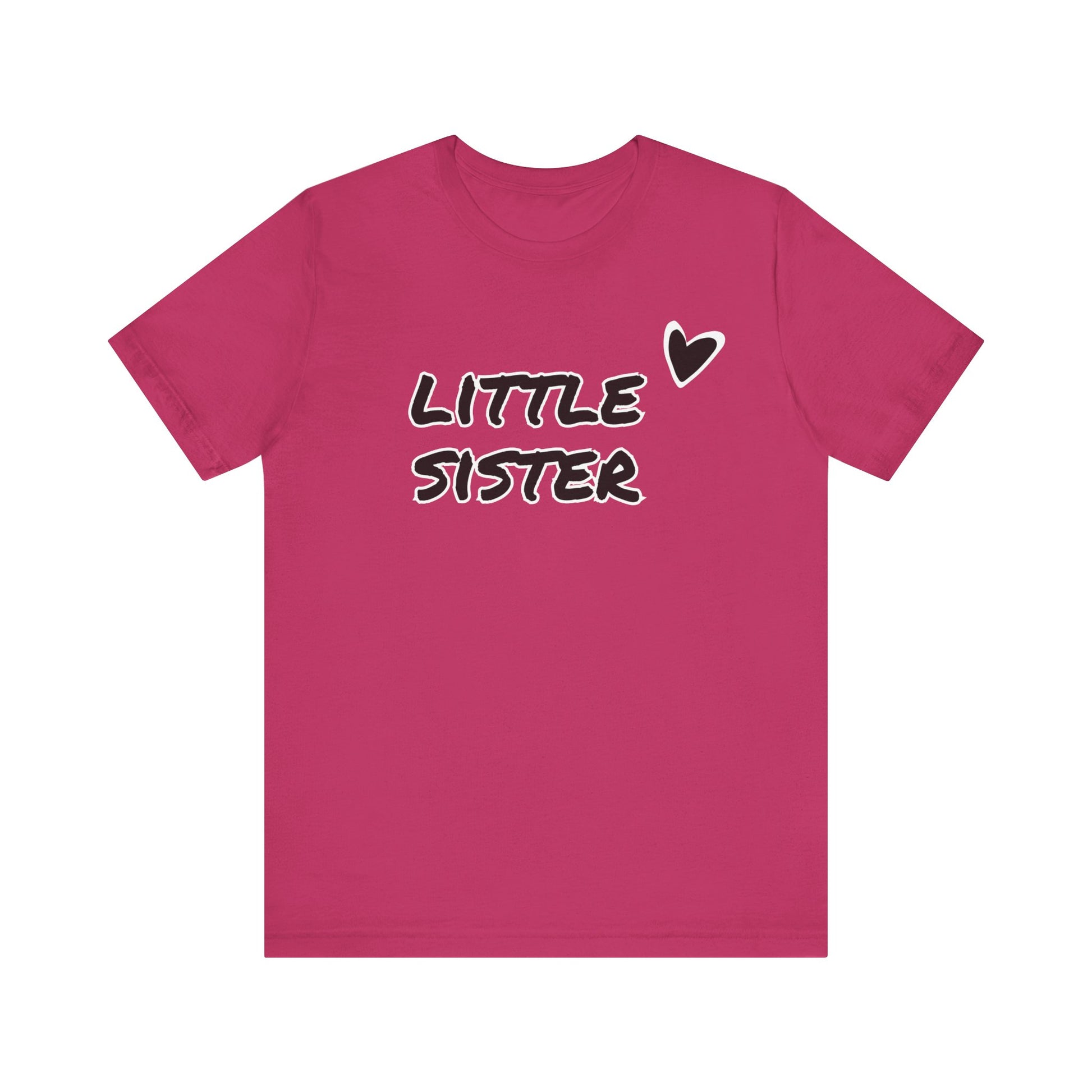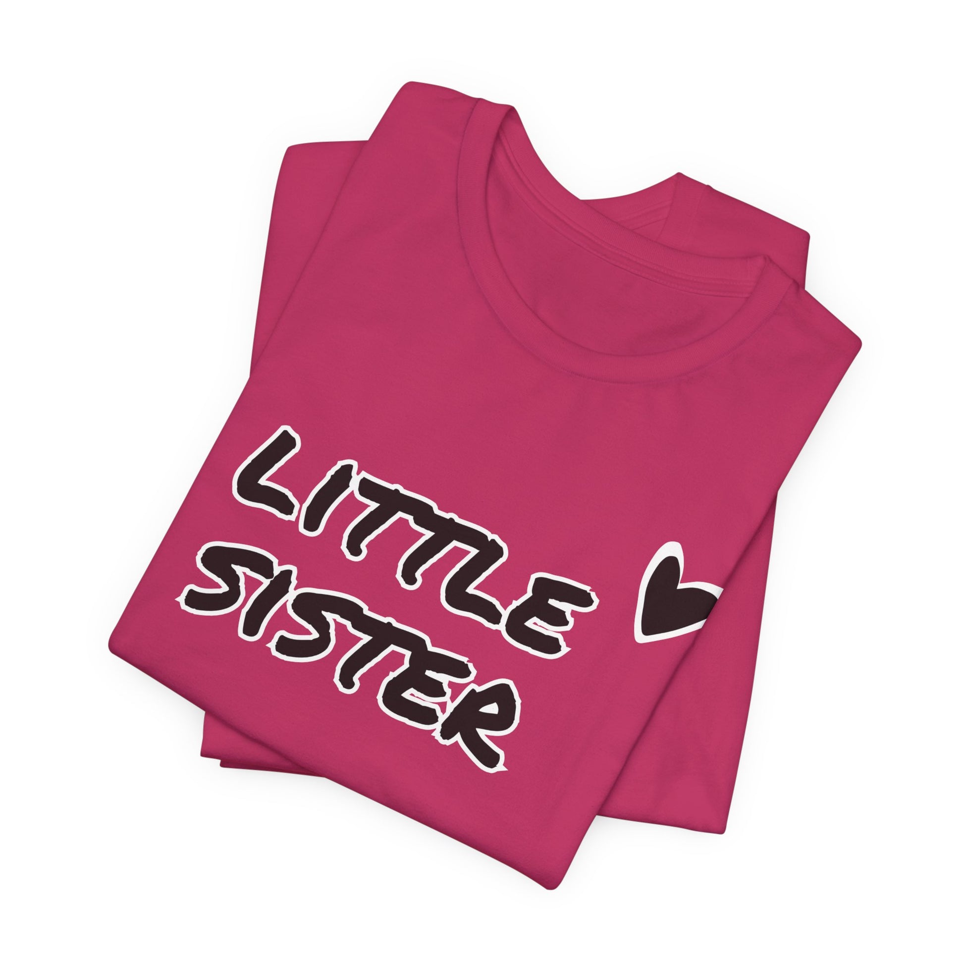 Celebrate the charm and joy of being the youngest with this playful "Little Sister" t-shirt. The whimsical, hand-drawn style lettering paired with a cute heart perfectly captures the endearing qualities of the youngest sibling in the family. Ideal for everyday wear, special sibling occasions, or as a heartfelt gift, this shirt is a sweet way for a little sister to flaunt her special status with pride and love.
