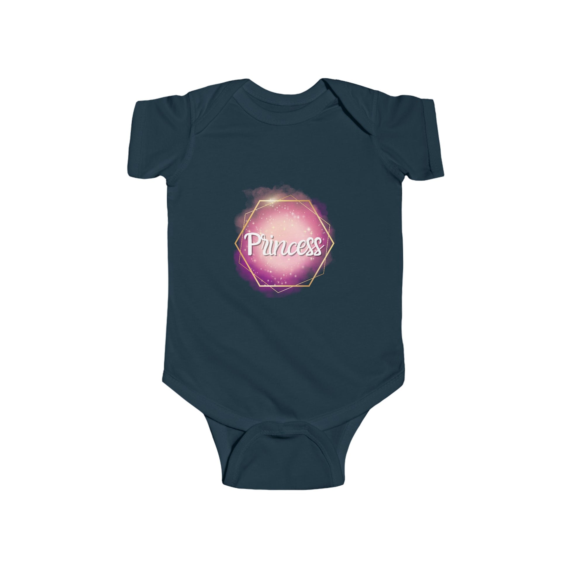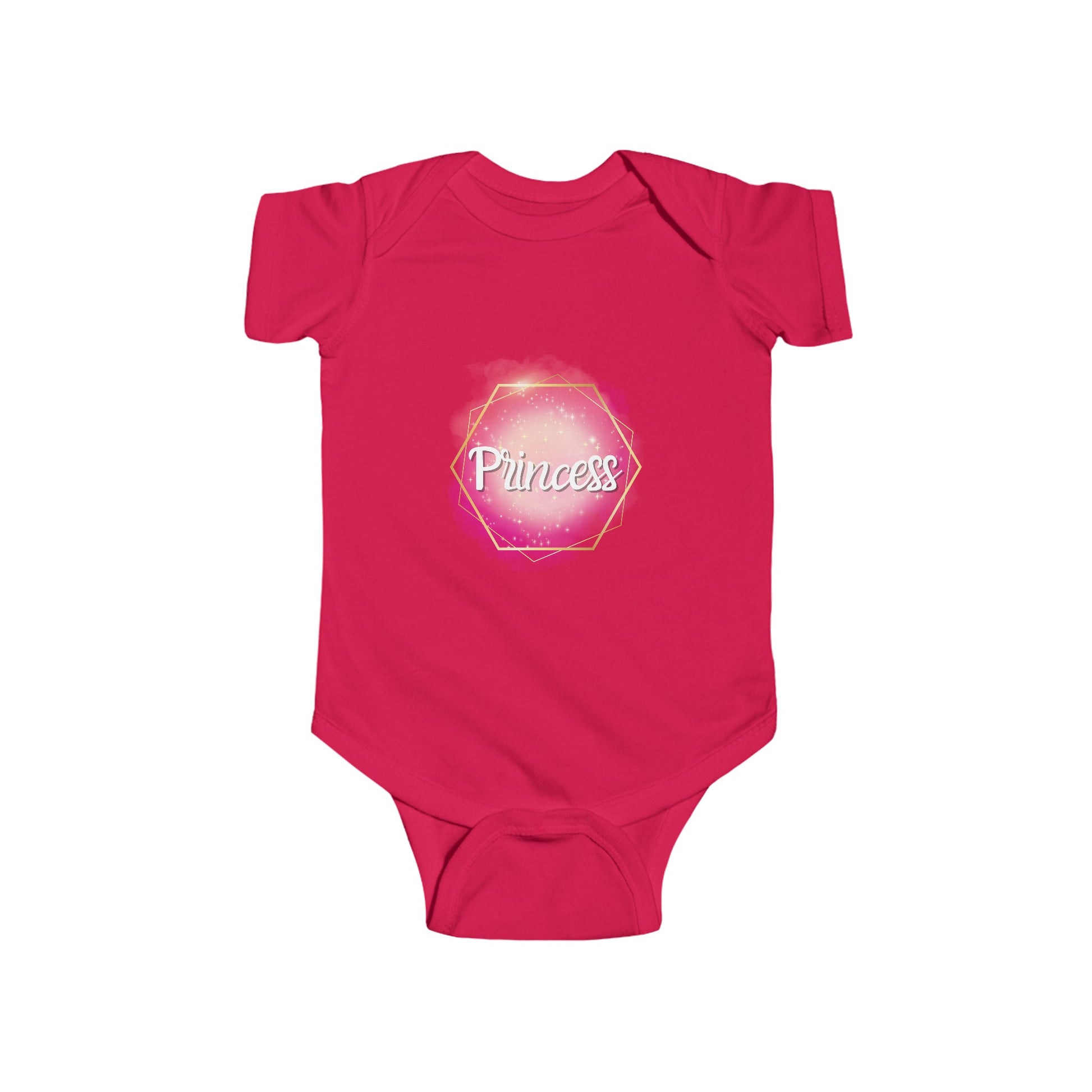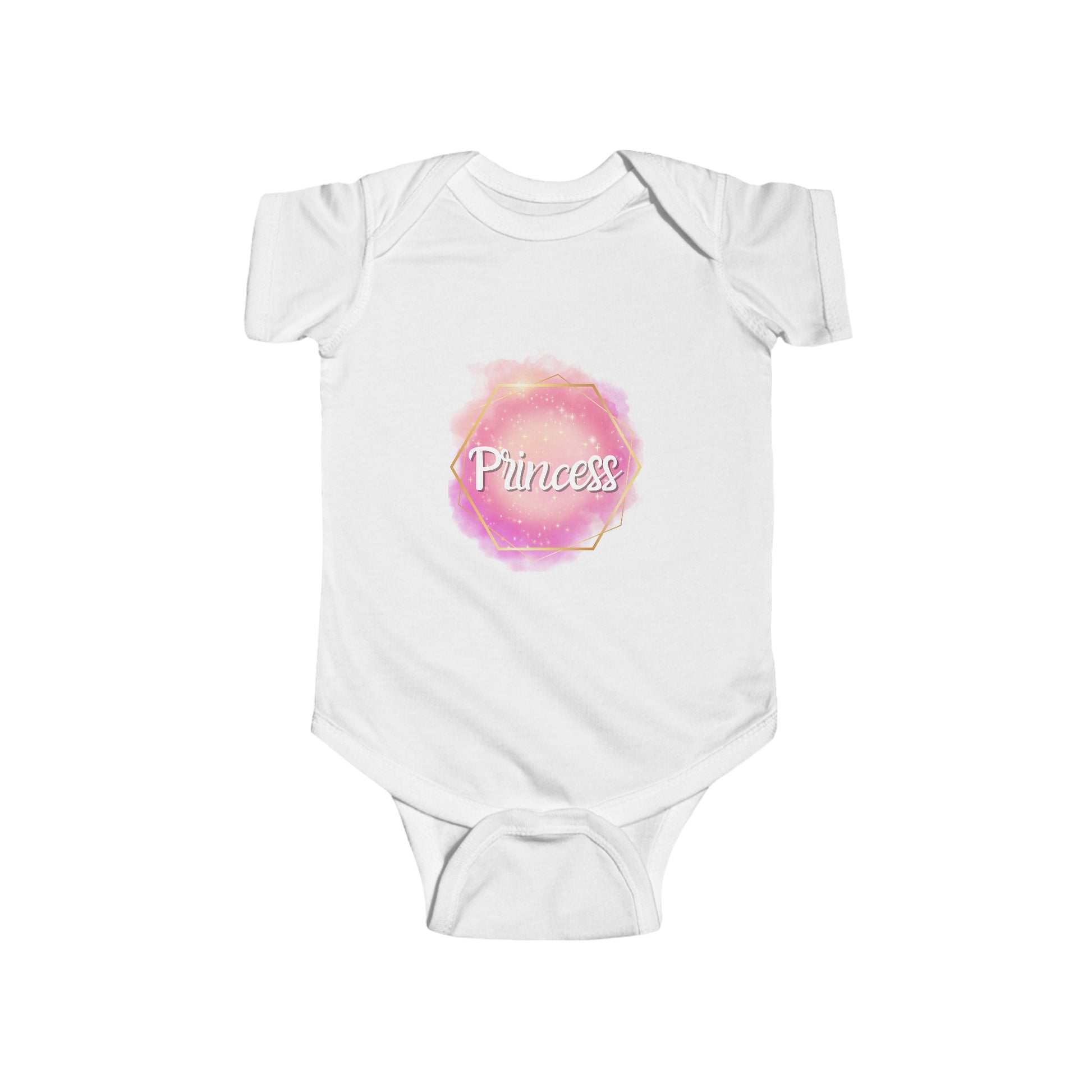 Dress your little one like the royalty they are with our enchanting "Princess" baby Jersey bodysuit! This delightful design features a radiant pink watercolor splash background, overlaid with sparkling stars and a bold, shimmering gold frame that highlights the word "Princess." Crafted for comfort and style, this bodysuit is perfect for your little princess's everyday adventures. It's not only adorable but also soft to the touch, ensuring your baby feels as good as they look!