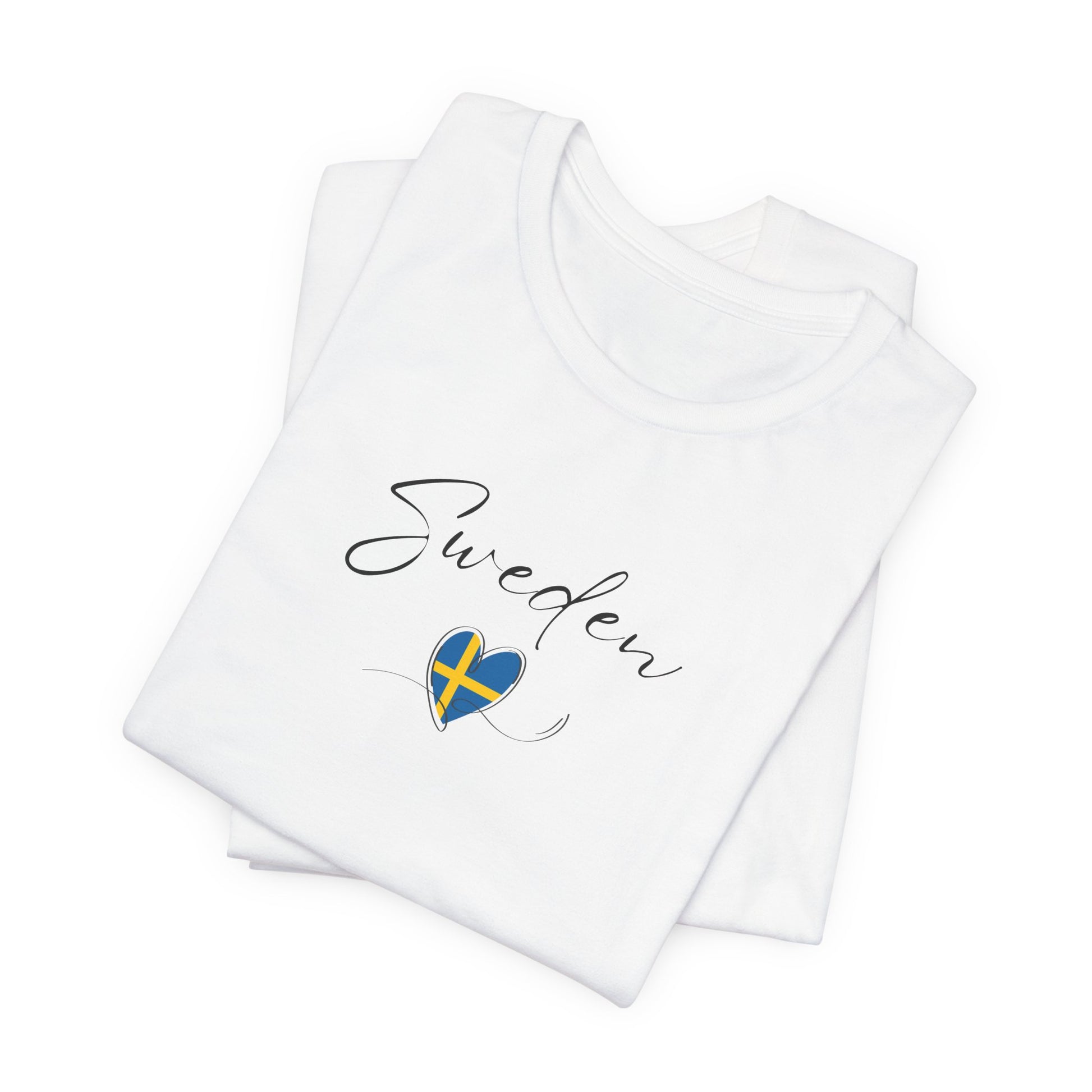 Sport your Swedish pride with this stylish Jersey Short Sleeve Tee featuring a heart design in the colors of the Swedish flag. Ideal for national celebrations or as a casual wear, this tee is a must-have for those who love Sweden.