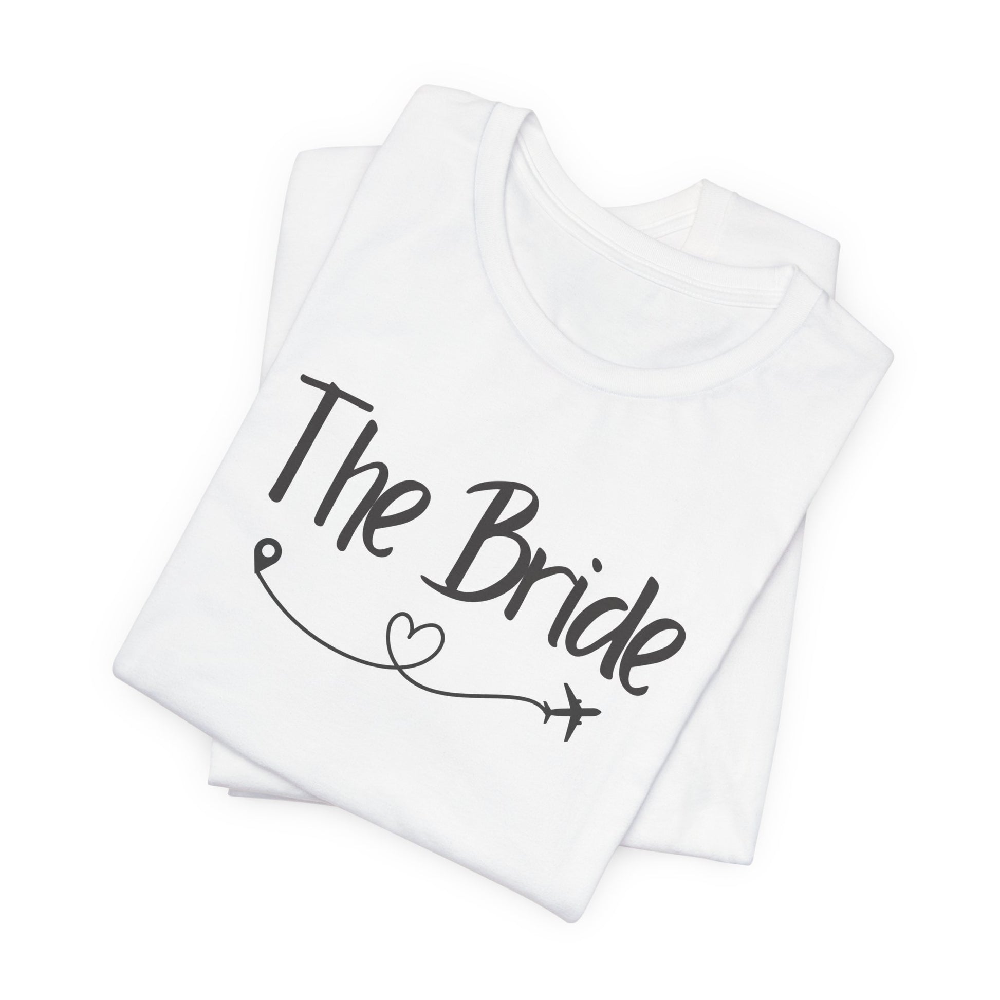 Step into the spotlight with our "The Bride" t-shirt, designed especially for the woman of the moment. This shirt features stylish, flowing script accentuated with a delicate heart and whimsical airplane, symbolizing the journey of love and new beginnings. Perfect for pre-wedding events, honeymoon travel, or as a keepsake of your special day, this t-shirt is a chic way for any bride to express her excitement and joy.